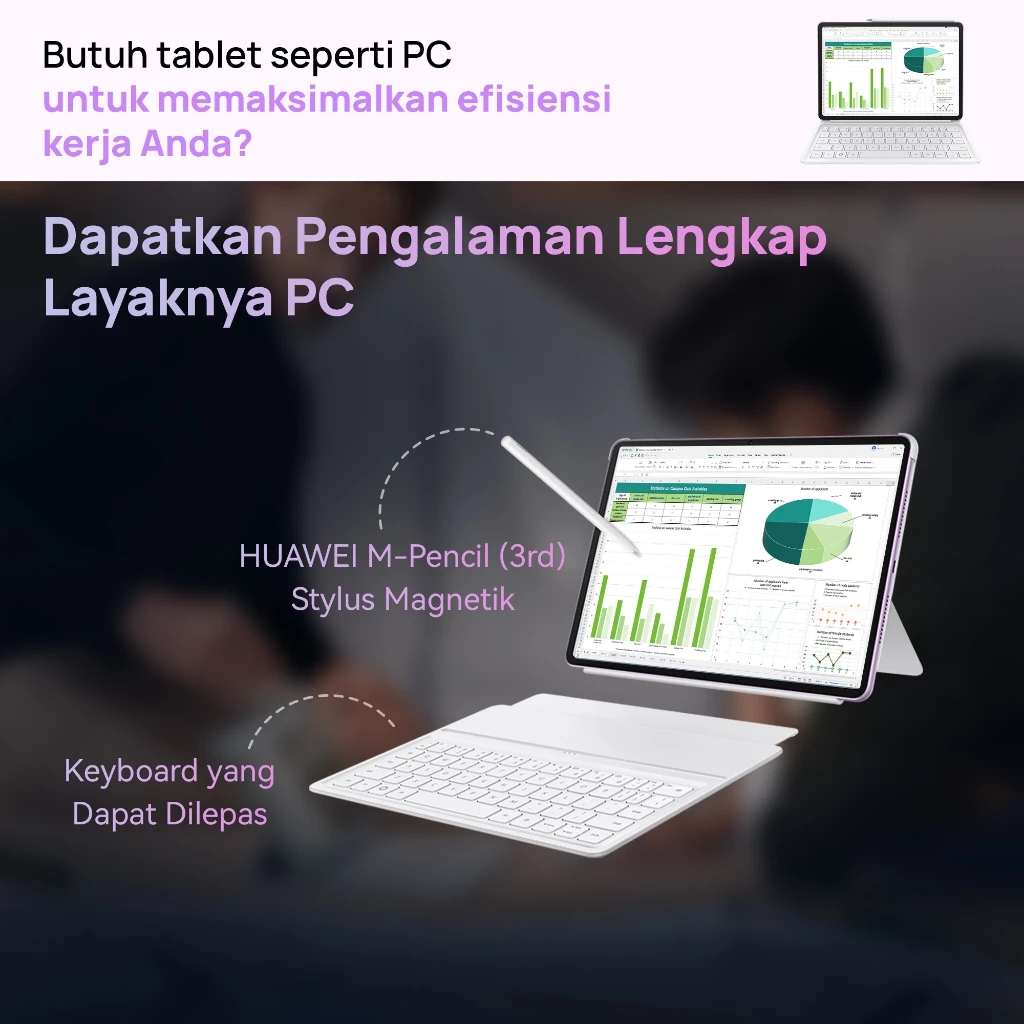Tips Bestie: > “Pasangkan tablet ini dengan keyboard magnetis aslinya agar transisinya dari tablet ke mode laptop jadi lebih sempurna. Mengetik laporan di pesawat jadi jauh lebih nyaman!”