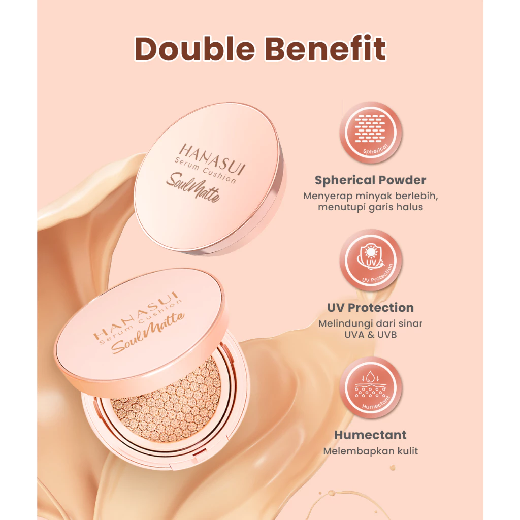 Hanasui Serum Cushion Soulmatte – Matte Finish UVA & UVB Protection Perfect Coverage Menyamarkan Pori-Pori Garis Halus Noda Wajah
