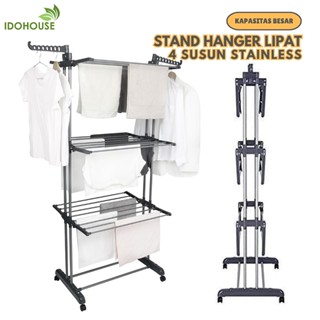 IDOHOUSE Rak Jemuran Lipat Baju Handuk Sepatu 24Baris+14 Slot 4Susun Dgn Roda Gantungan Pakaian B03A