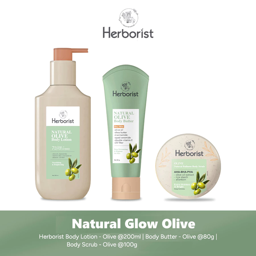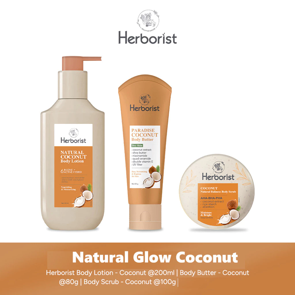 HERBORIST Natural Glow Bundle | Paket Body Scrub + Body Butter + Body Lotion Kulit Halus, Lembap & Cerah Alami